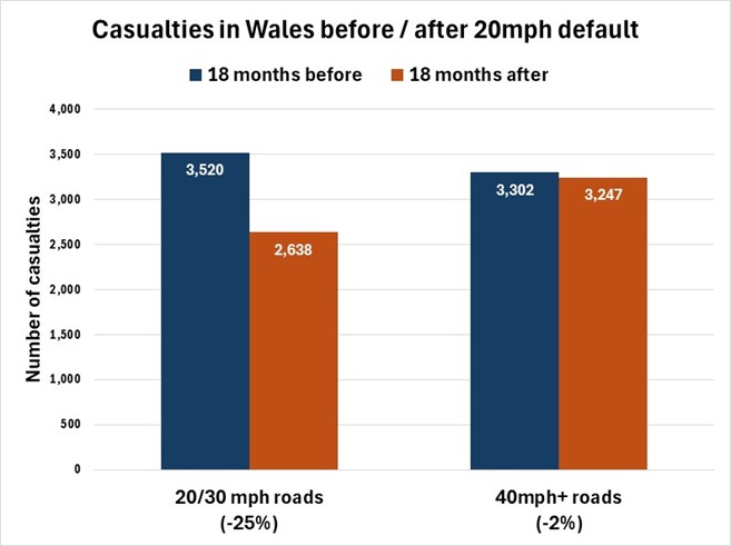 Over those 18 months, 14 people have not been killed on Welsh roads because of 20mph and 98 will have avoided a hospital visit for a serious injury.